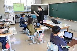 2年生は国語と生活単元、3・4年生と5・6年生は算数の授業でした。子どもたちは、普段通り一生懸命に学習に取り組み、先生方にたくさん褒めていただきました。
