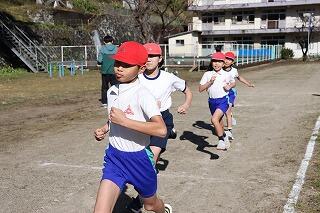 11月28日(金)、「元気タイム」のまとめとして持久走大会がありました。低学年3分、中学年4分、高学年5分の時間走です。「第1回目の自分の記録をどれだけ更新できるか」を目指して、みんな頑張りました。
