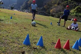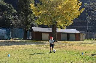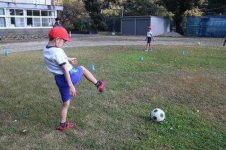 最初に、みんなで輪になってパスをしました。蹴ったり止めたりしました。変なところにボールが行ったり、空振りしたりしましたが、楽しかったです。