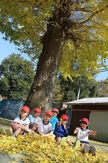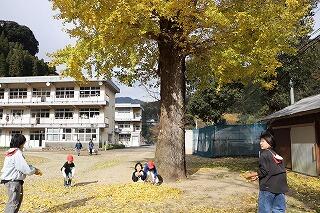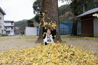 昼休み時間に運動場に行くと、いちょうの落ち葉を集めて思い思いに遊んでいました。