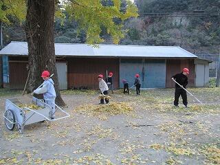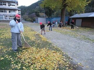そして、次の日の朝のボランティア活動では、自分たちでせっせと落ち葉の片付けをしてくれました。