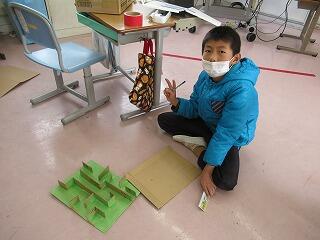 保育園生が楽しく遊んでくれるおもちゃを工夫して作っています。失敗することもありますが、作り直しをしながらどんどん完成に向かっています。