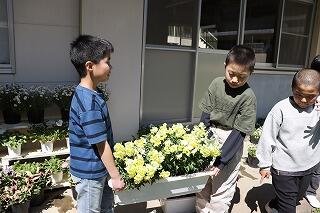 それから、代表児童が花束を贈呈しました。