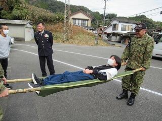 自衛隊の方には、自衛隊の仕事について教えていただきました。簡易担架の作り方も習い、実際に作れるようになりました。