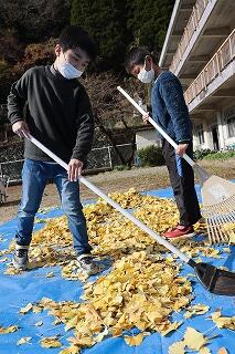そして、次の日の朝のボランティア活動では、自分たちでせっせと落ち葉の片付けをしてくれました。