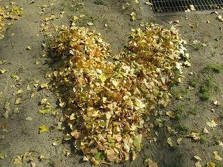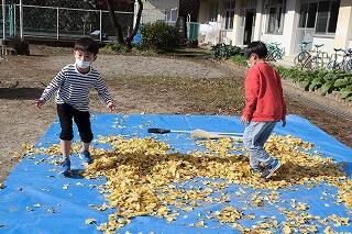 昼休み時間に運動場に行くと、いちょうの落ち葉を集めて思い思いに遊んでいました。