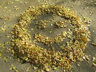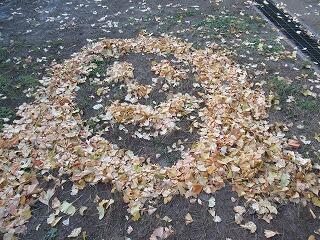 日に日に、銀杏の木の下に「イチョウのアート」が増えていきました。インフルエンザなどで欠席しているお友達を元気づけるために作ったのだそうです。