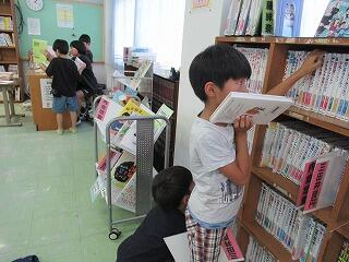 7月2日(水)のお昼休み時間は、明日さ指数「32」でした。そんな日の子どもたちの様子を見て回ると・・・図書館で本を借りたり、教室で読書をしたり、涼しい教室で室内遊びを楽しんだり、勉強したりして過ごしていました。