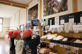 売店に並んでいる特産物を観察したり、お店の方にインタビューしたりして日之影町の特産物にはどのようなものがあるかを調べました。