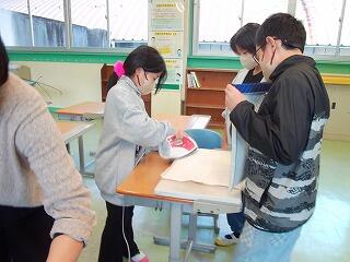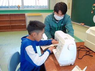 5・6年生は、家庭科でミシンを使ってバッグ作りをしています。