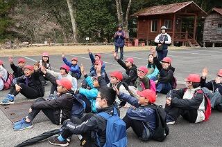 予定通り8時30分にバスで出発しました。男淵橋に到着後、縦割り活動班でセラピーロードを謎解きをしながら散策し、日之影キャンプ場に向かいました。