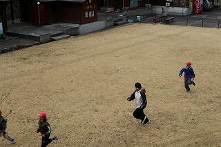 11時30分ごろ学校に帰って来て、運動場でお弁当やおやつを食べました。そして、体育館で続きの遊びやイベントをしました。