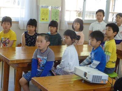 朝の時間を使い、子どもたちに「日之影の野鳥」について話をしてくださいました。