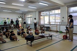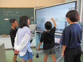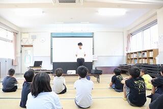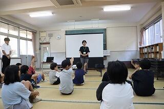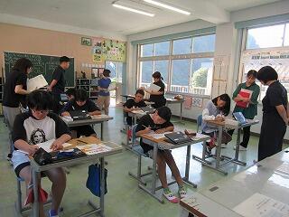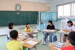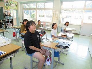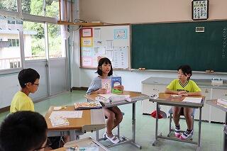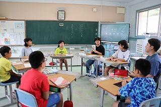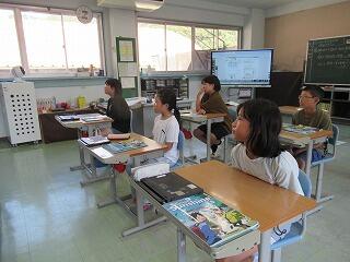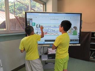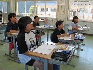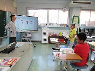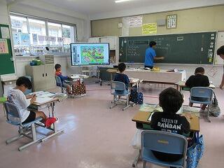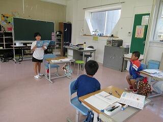 3・4年生教室、5・6年生教室では、複式授業の様子や異学年の子どもたちが一緒に学習する教科を見ていただきました。