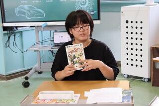 自分のお気に入りの本を紹介し合い、読書の幅を広げる学習です。面白そうな本、感動的な本、スポーツ選手の本など、先生を交えて参加した8人のお気に入りの本は、実に様々でした。