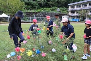 9月27日(土)、5時間目に、全校児童と全保護者で運動会の準備をしました。卒業生も手伝いに来てくれました。