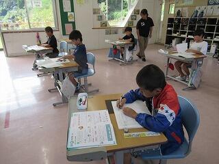 10月9日(木)の5・6時間目、3・4年生は習字の学習でした。