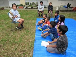 朝の空気が気持ちよく、秋を感じながらの読み聞かせとなりました。