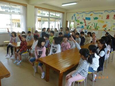 【感想発表-さすが5、6年生!たくさん手が挙がっていました。】