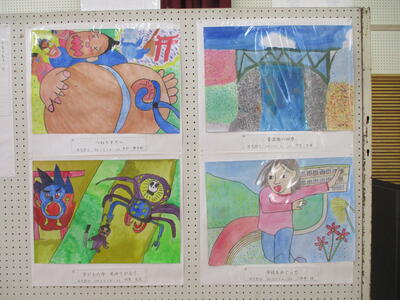 図工の時間、1,2年生がかいた読書感想画を紹介します♪
