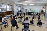体育館に集まり、校長先生のお話、作文発表、神田先生や酒井先生のお話がありました。