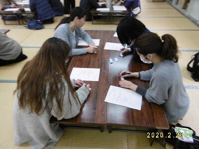 【グループづくり:一切しゃべらずに、誕生日ごとに並んでいきます。見事!間違えずに並ぶことができました。】