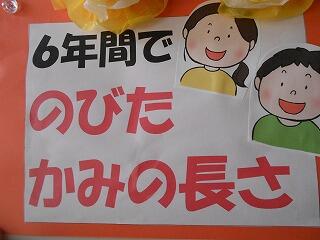 児童はこの6年間で大きく成長しました。身長・体重はもちろん、他にもたくさん成長しました。例えば・・・6年間で伸びた髪の長さは