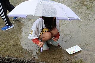 田んぼ一面に植え終わり、「上手に植えられたね。」と褒められました。今日の田植えでお世話になった若杉さん、山口さん、ありがとうございました。