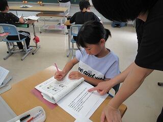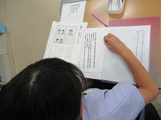 3年生は、国語で「引用」の学習をしました。本や新聞などの言葉や文を引用する時には「 」を使うこと、引用する部分はそのまま書き抜くことなどを学習しました。教科書で「引用」の間違い探しもしました。集中して取り組み、間違いをしっかりと見付けることができました。