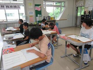 6月15日(日)は、日之影町教育の日でした。日之影小学校と高巣野小学校と宮水小学校の全児童が一斉に集まり、宮水小学校で学年ごとに勉強(参観授業)をしました。