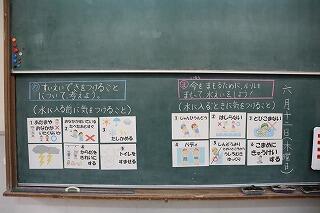 そこで、今日は全校みんなで集まって、いつでもプール開きができるように、プールの約束を確かめたり、自分の目標(めあて)を立てたりしました。