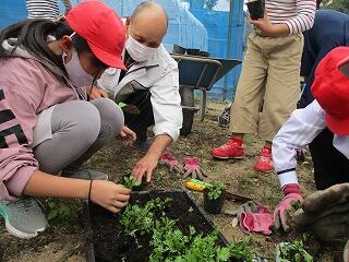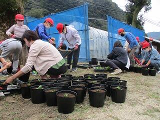 その後は、渓谷祭り会場に移り、つつじの苗木200本を、作成したメッセージカードと一緒に配布しました。