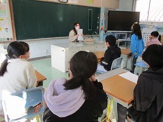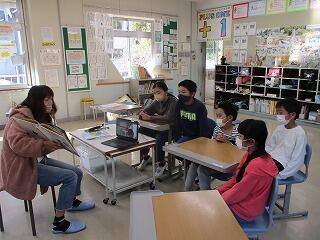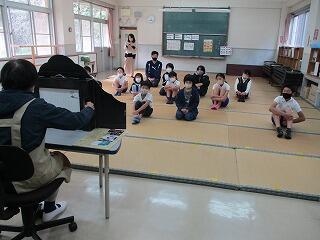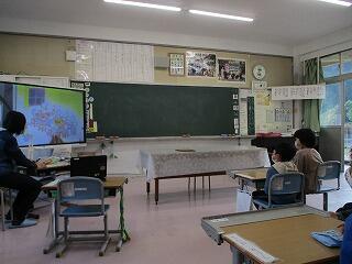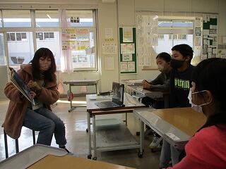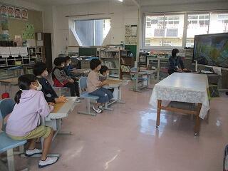 総合的な学習の時間で、日之影の森林について学んでいる子どもたち。