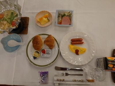 朝は慣れて、量の多い朝食と格闘しておりました。