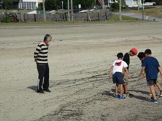真剣な眼差しで、指導者の方々の話を聞く3・4年生です。