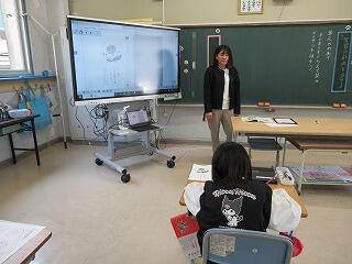 3年生は、国語の時間でした。「こまを楽しむ」の学習をしていました。自分でワークシートにまとめたり、先生と交流したりしていました。