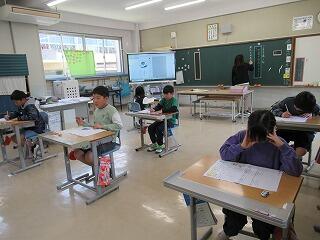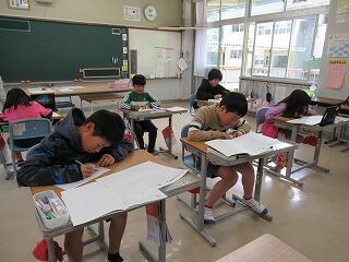 4年生は、テスト中でした。真剣に考えている様子が伝わってきました。これまでの学習の成果が発揮できるといいですね。