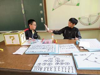 6年生は、明後日の遠足に向けて準備中でした。全校児童で楽しく遊べる工夫を考えていました。保育園生との交流もあるので、保育園生も喜んでくれるように二人で一生懸命に準備していました。