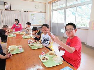 5年生のいない5・6年教室に行ってみました。さすが6年生!先生の出された課題に一生懸命に取り組んでいました。給食は、2年生とランチルームで食べました。2年生も嬉しそうでした。↓↓↓