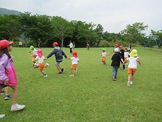 癒しの森運動公園では、全校みんなで遊んだり、日之影保育園の年長さんたちと交流したりして楽しく過ごしました。6年生がみんなで遊べる遊びを考えてくれたお陰で、保育園生も小学生もみんなにこにこ、笑顔いっぱいの春の遠足になりました。