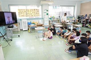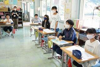 日之影小は、朝のボランティア活動が終わると、町内を流れる放送に合わせてみんなでラジオ体操をします。