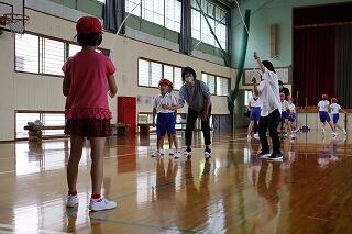 体育主任の先生が一つ一つ丁寧に動きを教えてくださいます。