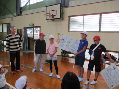 昼食後、5年生が企画したゲーム「王様じゃんけん」「ボーリング」「ドッジボール」をして遊びました。