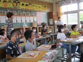 1年生は、国語の「大きなかぶ」でした。実際に演じながら音読を行うことで、「なかなか」「まだまだ」抜けない様子を上手に表現できていました。
