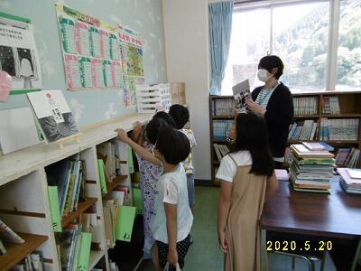 毎週水曜日は、読書活動推進員の木下なな先生に来ていただき、図書室の環境整備や読書指導、絵本の読み聞かせ等、児童に本の魅力を伝えていただいています。