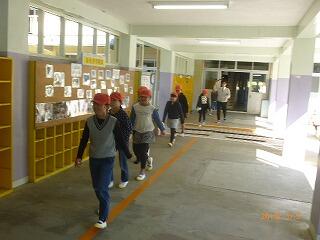 避難の合言葉「(押さない)(走らない)(しゃべらない)(戻らない)」を守り素早く運動場に避難できました。(避難までの記録 2分5秒)