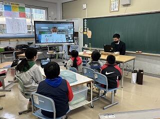 コロナ感染予防対策として、オンラインで行った2学期の終業式。