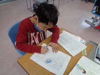 小学生になり、できるようになったことやうれしかったこと、楽しかったことなどを日之影保育園の先生たちに伝えたいと、お手紙を書きました。