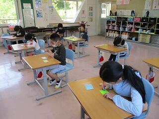 日之影小は、朝のボランティア活動が終わると、町内を流れる放送に合わせてみんなでラジオ体操をします。