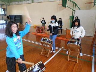 3・4年生が楽しそうに和太鼓を叩いていました。